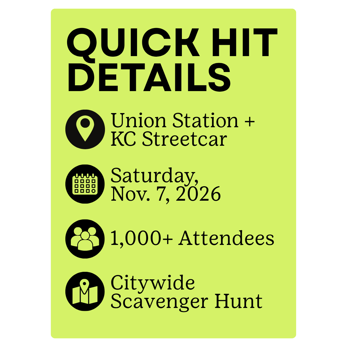 Beginning and ending at Science City at Union Station, the Amazing Race spans iconic Kansas City destinations—including the River Market and The Plaza—utilizing the KC Streetcar to create a highly visible, citywide experience.